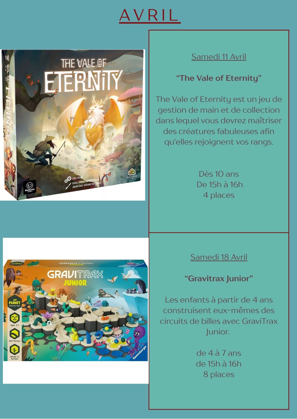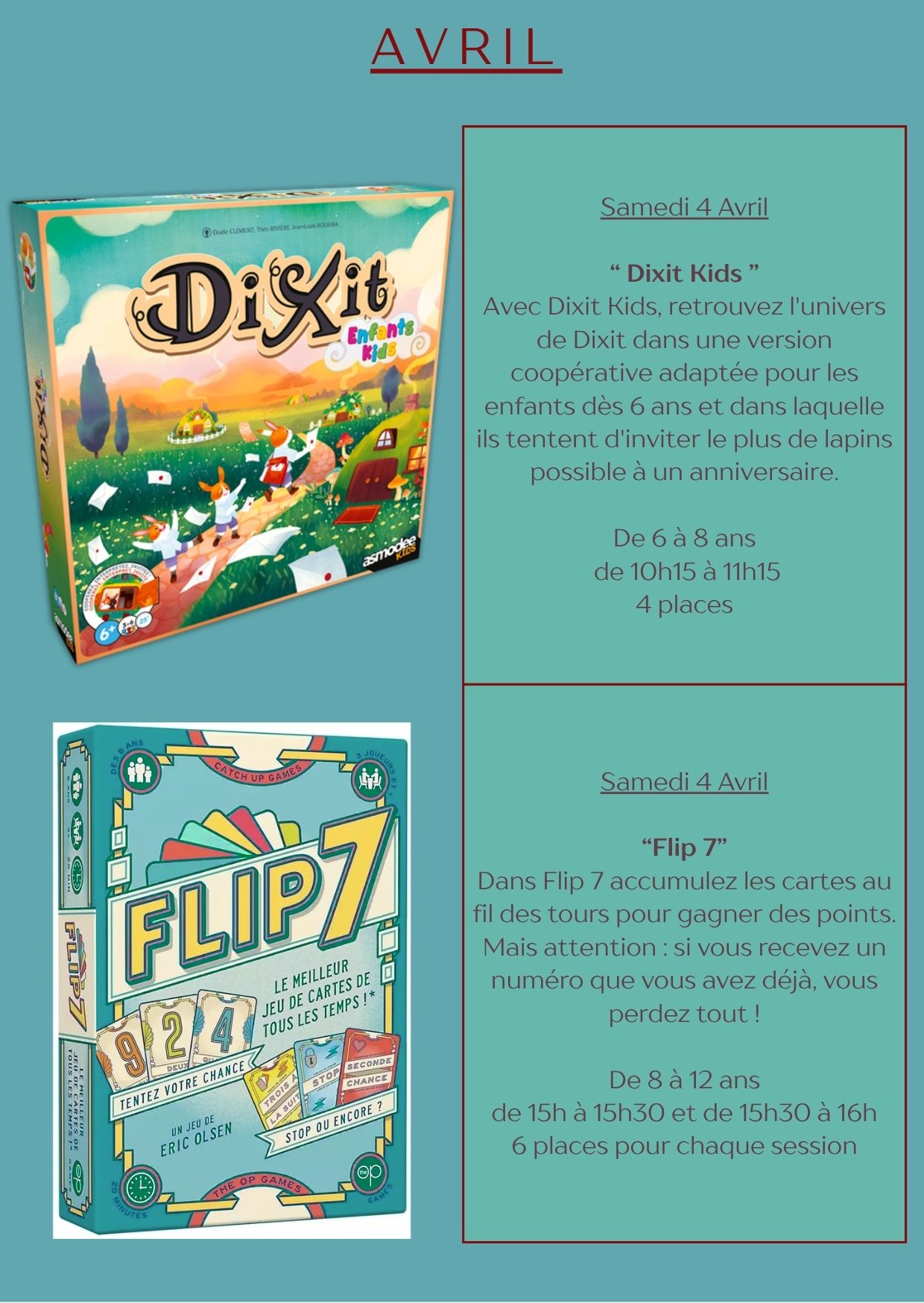☀️Venez profiter des dernières activités du mois d'avril à la Ludochouette ☀️