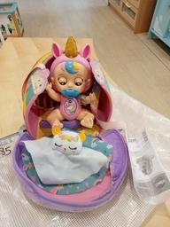 Poupée douce en chiffon et son couffin facile à transporter. Prends soin de ton bébé grâce aux nombreux accessoires inclus : une couche, un bavoir, un biberon, une couverture, un doudou en forme de lapin de 11,5 cm et un certificat de naissance. Habille ton bébé, change-lui sa couche, donne-lui son doudou, nourris bébé avec le biberon et mets-le au lit.