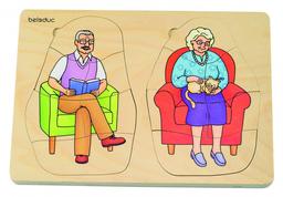 Ces familles, très complètes, vont du bébé jusqu'aux grands-parents et permettent d'aborder de nombreux sujets comme le dialogue entre les générations ou l'évolution et le vieillissement. Disponibles en différentes ethnies, elles permettent de sensibiliser les enfants au respect d'autrui. Composition : le père, la mère, 2 fils, 2 filles, le grand-père et la grand-mère.