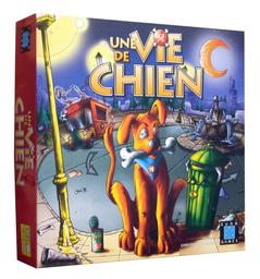 Vous êtes un chien errant. Vous n'avez qu'un objectif : trouver des os et les enterrer sur votre territoire. Mais attention, il faut se nourrir, se battre, et surtout éviter la fourrière. Quelle vie de chien ! Une si jolie petite ville. Le plateau de jeu représente une ville vue du ciel, avec ses rues, ses restaurants, ses terrains vagues, etc., le tout formant un circuit dans lequel on se déplacera case par case. Chaque joueur va prendre au hasard une des 6 fiches de chiens, celle-ci indiquera, par sa couleur, la figurine, le marqueur "faim", les marqueurs "pipi" et les 13 cartes qui composeront le matériel canin propre à chaque participant. Chaque joueur prendra ensuite, toujours au hasard, une des 6 cartes "terrain vague". Elle va indiquer l'emplacement de départ sur le plateau, et surtout, l'endroit où le chienchien viendra enterrer ses nonos. Les marqueurs "poubelle", "journal", "os" sont placés aux endroits correspondant, et le pion "fourrière" devant la sortie de la fourrière, au centre de la ville. C'est mon toutou à moi ça. Les fiches de chiens comportent les caractéristiques de votre animal. Son nom, sa race, une "photo", 2 cases "transport" dans lesquelles vous mettrez les os et les journaux que votre "meilleur ami de l'homme" transportera, 2 cases "pipi de chien" (sa vessie), une échelle de faim (son estomac), et le nombre d'actions pouvant être entreprises par tour (celui-ci varie de 6 à 8 selon le chien). En début de partie, tous les chiens ont le marqueur "faim" sur 4 (ils ont l'estomac plein) et un marqueur "Pipi" sur une case "Pipi de chien" (ils ont la vessie à moitié pleine). Les cartes "résultats des actions" sont mélangées et posées faces cachées devant chaque joueur. Elles comportent 6 cases apportant un résultat aux actions entreprises par votre chien. Chaque chien est plus ou moins fort dans un domaine, comme mendier dans les restaurant ou fouiller les poubelles. Viens le chien, viens voir papa. À son tour, le joueur actif doit exécuter 3 phases : 1/ Bouger son marqueur "faim" d'une case vers le 0. Si le marqueur est sur 0 au début du tour, le chien va à la fourrière en laissant sur place tout ce qu'il transportait. Un chien qui part à la fourrière voit son tour terminer. 2/ Effectuer des actions. Chaque action coûte 1 point "action". Elles sont au nombre de 11 et permettent des choses comme : se déplacer d'une case ou plus, fouiller une poubelle pour trouver un os ou de la nourriture, mendier dans un restaurant, livrer un journal, attaquer un autre chien, enterrer un os, faire pipi, boire, etc. Pour résoudre des actions comme fouiller une poubelle, attaquer ou mendier, le joueur actif retourne la première carte de sa pile et regarde la case correspondant à son action. Un dessin (voir illustration) indiquera le résultat, qui pourra aller de "rien", à "trouver un os", en passant par de la "nourriture" pour faire remonter son marqueur "faim". Il ne peut y avoir qu'un chien par case. Un chien passant par une case contenant un marqueur "Pipi" adverse est obligé de s'arrêter et voit son tour finir. Un chien perdant un combat se voit embarquer par la fourrière et obliger d'abandonner ce qu'il transporte sur place, le laissant à la merci de son adversaire. 3/ Déplacer le véhicule "Fourrière". Un jet du dé à 6 faces va indiquer le nombre de cases de déplacement de la fourrière. Si ce déplacement se termine sur une case ou stationne un chien, celui-ci va tout droit à la fourrière et laisse sur place tout ce qu'il transportait. Si le véhicule s'arrête sur une case adjacente à un chien, celui-ci doit tenter de s'échapper, pour cela, le joueur concerné tire la première carte de sa pile et regarde la case "échapper à la fourrière". Si la carte indique que le chien fuit, tout va bien, si au contraire, le chien se fait attraper, il va à la fourrière en laissant toutes ses petites affaires sur place. Un chien à la fourrière ne peut rien faire, juste tirer des cartes pour essayer de sortir. Un chien sortira de la fourrière le marqueur "faim" sur 2. Oui, mais comment je gagne ? Le premier chien à enterrer 4 os dans son terrain vague est déclaré "Grand Vainqueur". Des variantes. Des variantes sont proposées pour allonger ou réduire la durée des parties.
