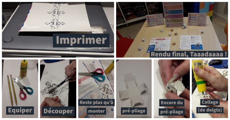 Souvent sous format PDF, vous imprimez le fichier et montez le jeu en suivant les instructions sur le plan fournit, à l'aide d'une paire de ciseaux et d'un tube de colle.
